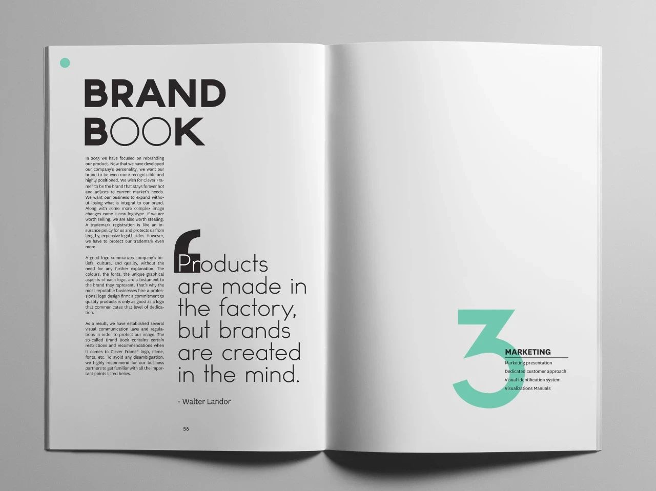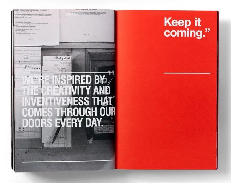 另外,在設計畫冊時,相連的兩P如果其中一P內(nèi)容比較多、排得比較滿,那么把相連的另一P多安排一點留白,通常能夠得到很不錯的效果,這也屬于對比式留白。